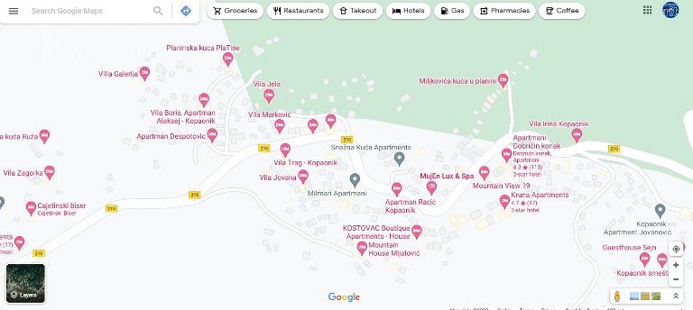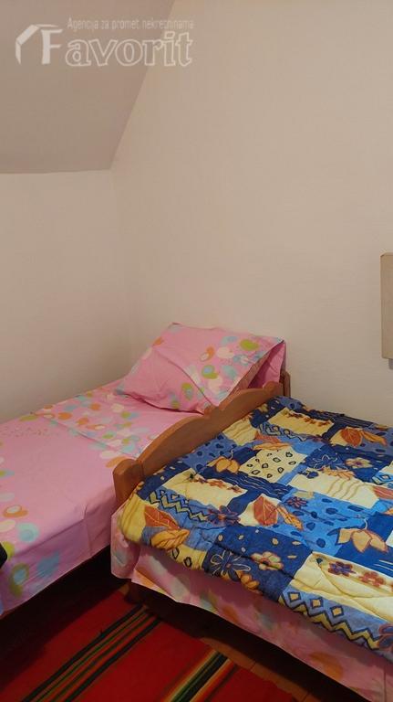 Tri nivoa. I nivo: dnevni boravak, kuhinja, trpezarija i kupatilo, II nivo 4 spavace sobe (12 lezajeva), u potkrovlju velika soba.