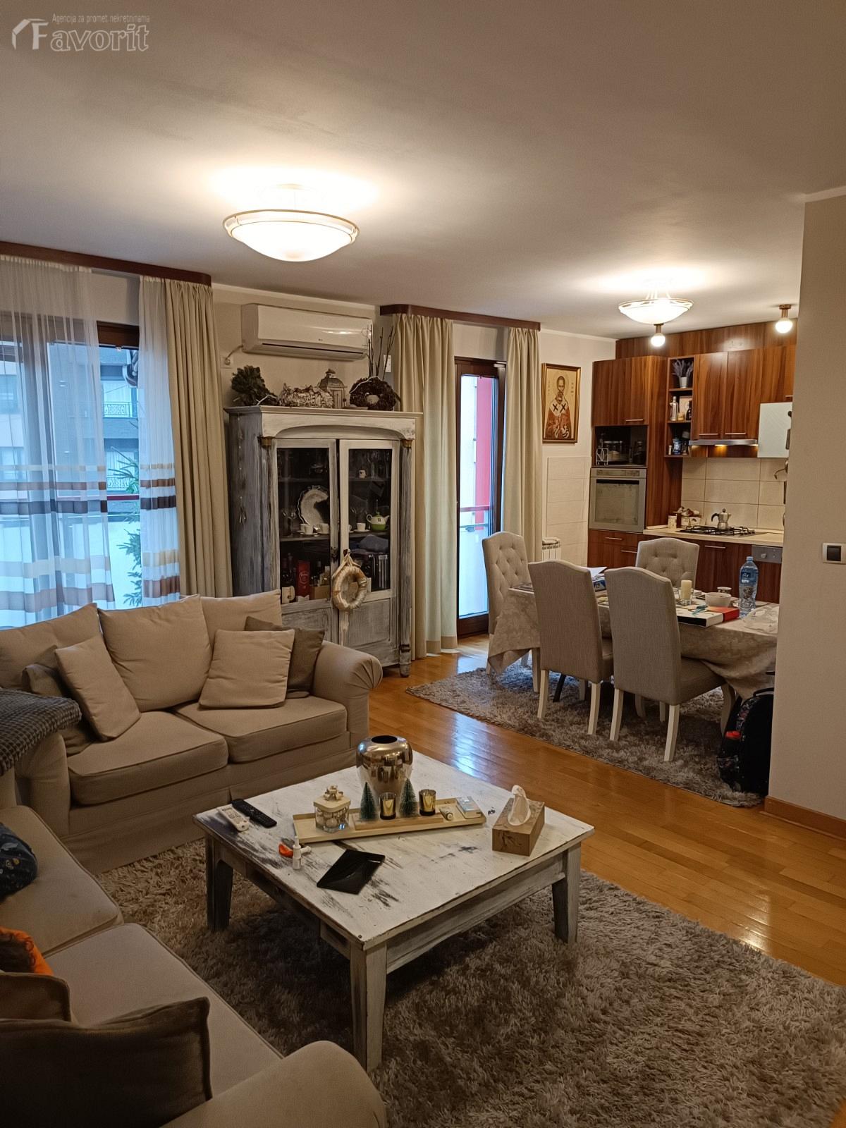 U cenu stana ulazi: savremena kuhinja po meri sa najnovijom ugradnom tehnikom, dva klima uredjaja, LG TV sa dijagonalom 50cm, garderober...