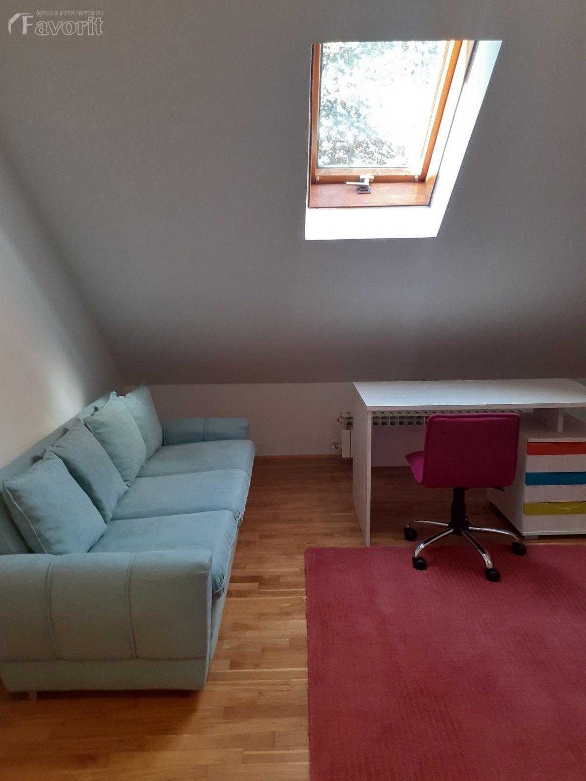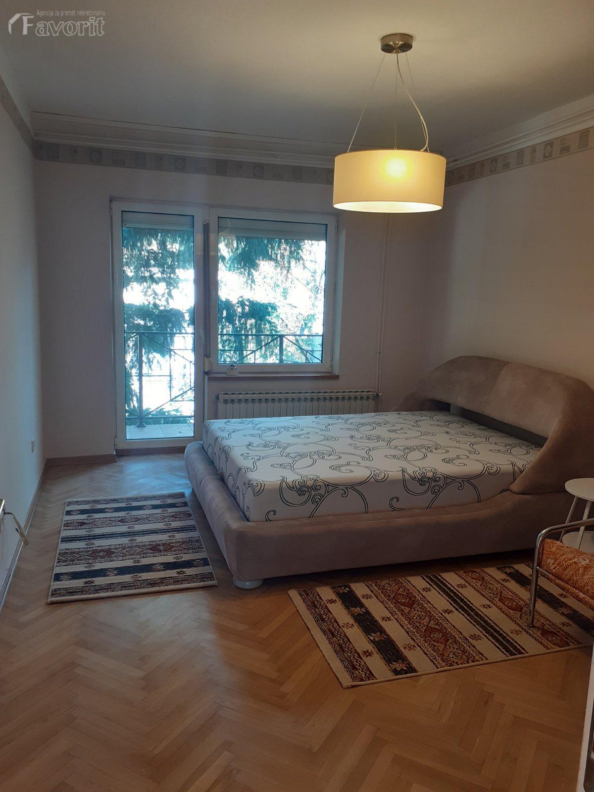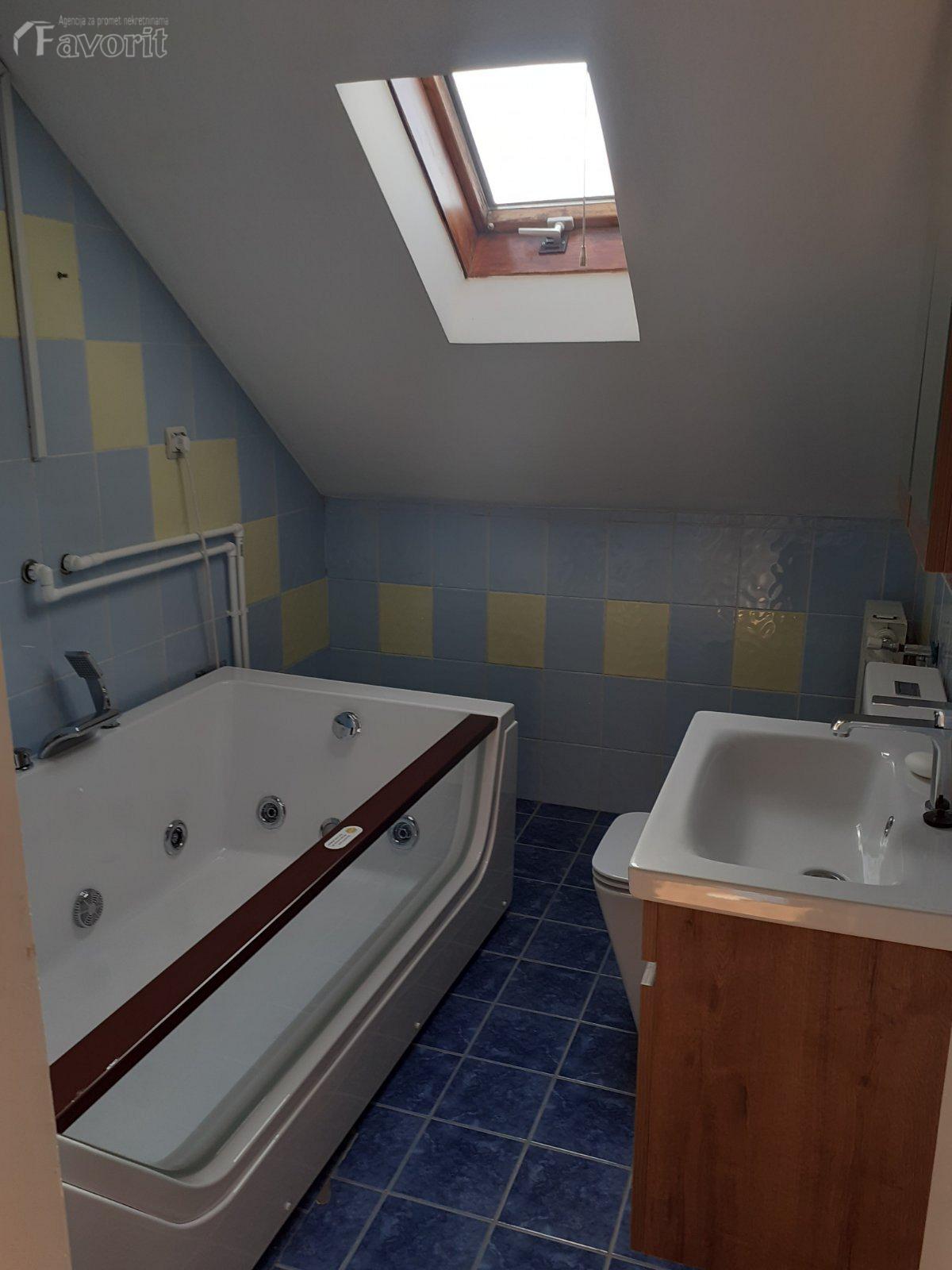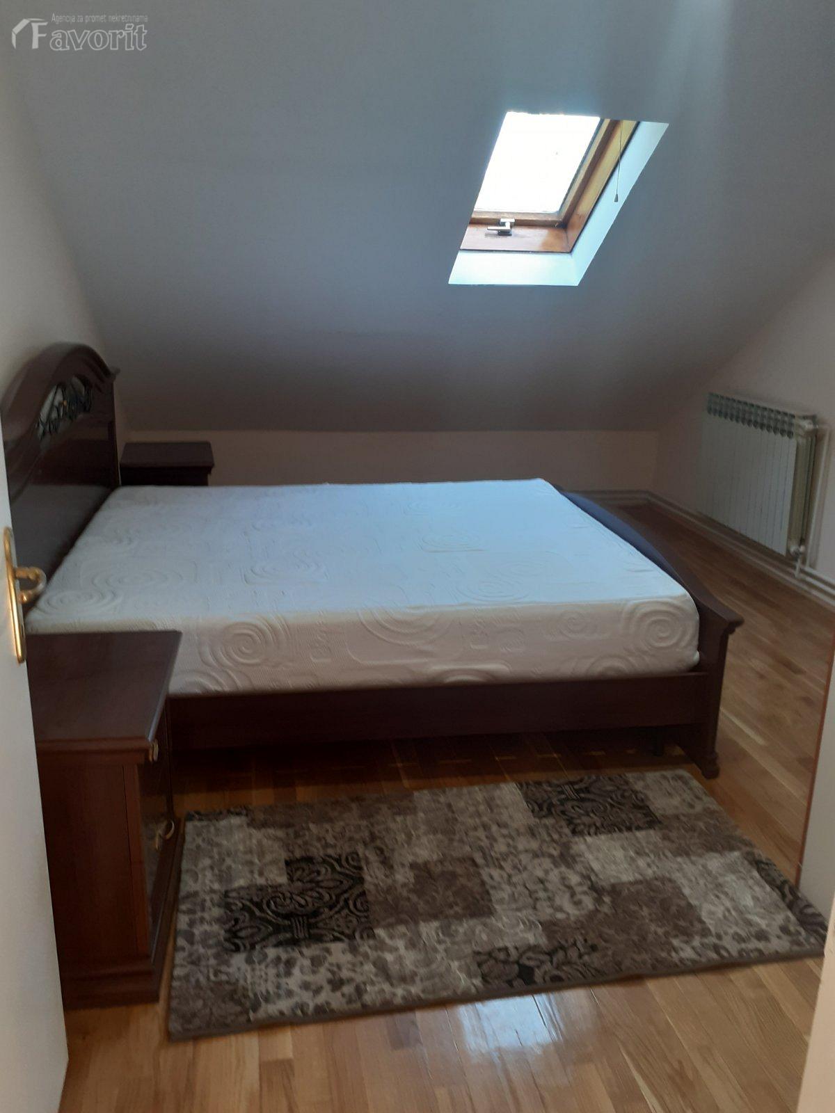 Kuca je renovirana, svetla, odmah useljiva. Ima 3 spavace, 2 dnevne sobe, 2 kupatila, ostava, trpezarija, podrum 30m2, 2 parking mesta. Izdaje se na duze vreme, moze i za poslovni prostor, firme...