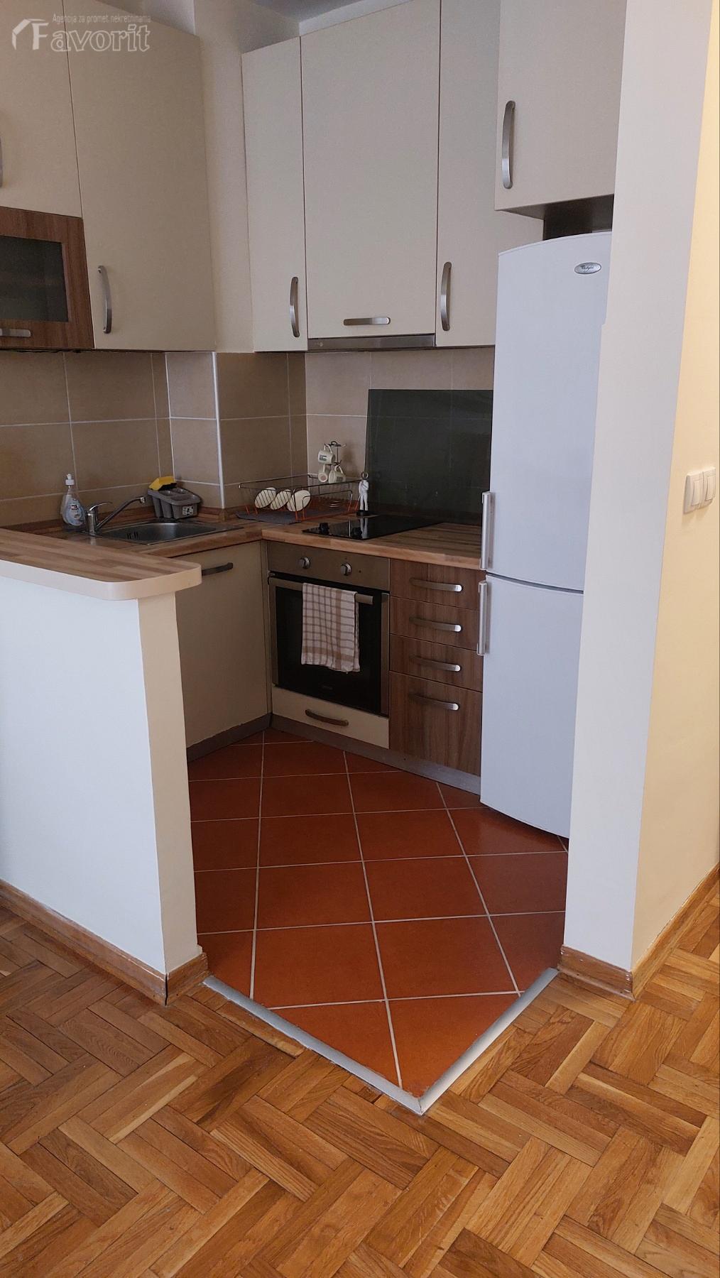 Prostorije: predsoblje, kuhinja sa prostranim dnevnim boravkom sa izlazom na terasu, spavaca soba sa bracnim krevetom i ugradnim plakarima, kupatilo komplet opremljeno sa masinom za ves.